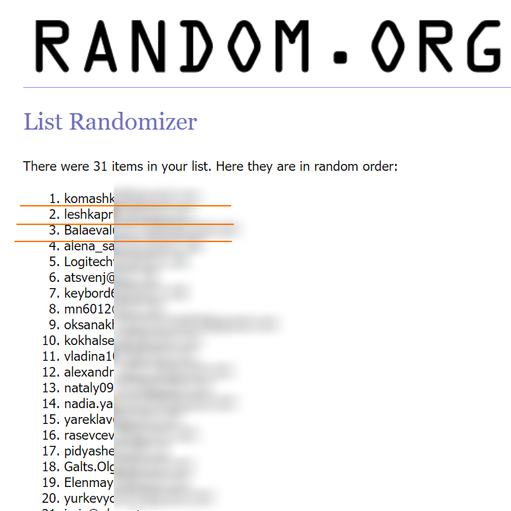 - Усі переможці визначаються рандомно, за допомогою сайту random.org