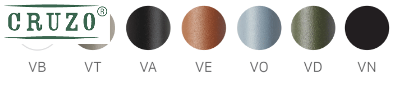 - Білий, Голубино-сірий, Антрацит, Теракота, Голубий, Оливково-зелений, Чорний