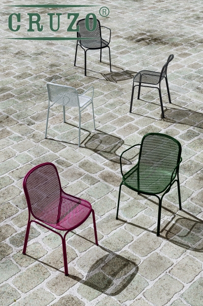 Цей стілець ідеально підходить для кафе, ресторанів, садів і терас. Завдяки штабельованій конструкції (до 6 штук) він зручний для зберігання та транспортування. Металеве сидіння доступне в кількох варіантах обробки, а також у моделях із підлокітниками (Villa 2) та у вигляді барного табурета (Villa 3A).