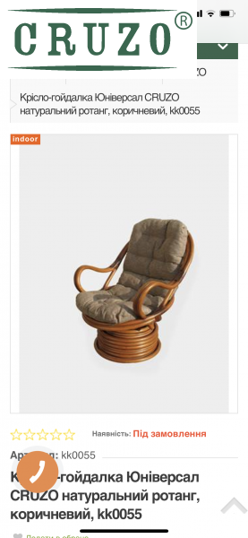 Просмотрев весь доступный ассортимент, остановил свой выбор на кресле Раунд (https://www.cruzo.ua/products/kreslo-kachalka-iz-naturalynogo-rotanga-raund-cruzox2122-kr0003)